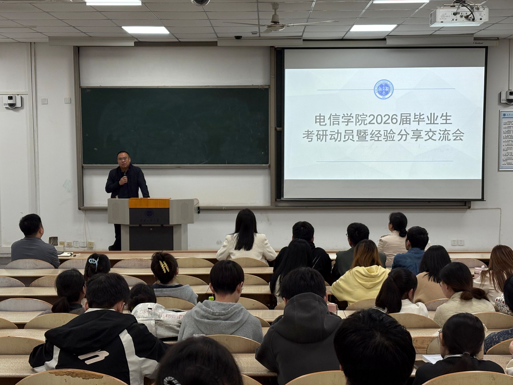为帮助2026届毕业生明确考研目标、掌握备考方法,电子信息工程学院于10月15日晚在教1-103召开考研动员暨经验分享交流会。学院党委副书记王利军及2026届毕业生、辅导员参会,会议由学院学工办主任何鹏程主持。