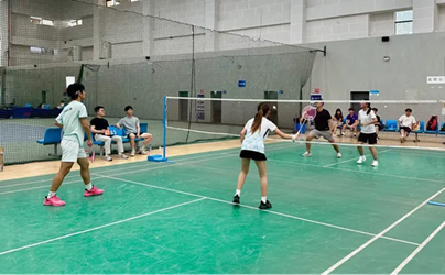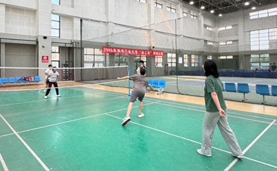 比赛现场气氛热烈,学院党委书记易超、副院长赵黎等老师不仅亲临现场为选手们加油助威,更亲自下场参与比赛,与同学们同场竞技、切磋交流。赛事设置了男子单打、女子单打、混合双打等多个项目,吸引了来自学院的30余名师生踊跃参与。