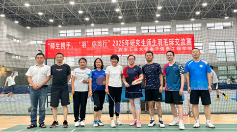 为促进师生交流互动,营造积极向上的校园文化氛围。2025年5月28日,电子信息工程学院在未央校区体育馆举行“师生携手,‘羽’你同行”研究生师生羽毛球交流赛。活动由学院研究生会组织承办。