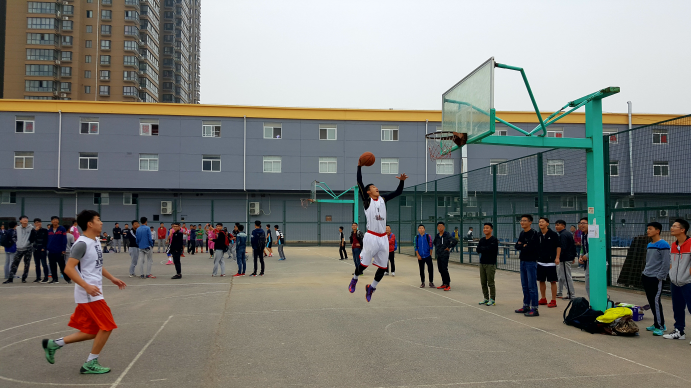 金秋十月,碧空如洗,凉爽舒适。2016年10月11日,伴着秋风,迎来了西安工业大学迎新杯篮球赛。正值中午,电信院与经管院展开了一场激烈的友谊赛。参与本次活动的有体育部部长王宏洋、副部长杨攀,生活部部长李晨阳,秘书部部长刘海涛。