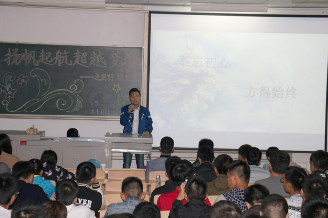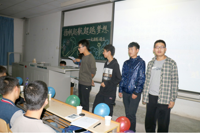 活动开始,首先主持人强调会议记录,团委副书记夏开成老师进行了讲话,就此次活动的主题“扬帆起航,超越梦想”进行了简短的发言,并对新生提出新的期望。其次由各专业的往届优秀生代表就自己的学习方法、就业方向和各专业介绍进行了详细的讲述。活动期间为了活跃气氛,学习部安排了唱歌和游戏环节。又由新生代表就大学新航程进行发言。最后由学生会副主席刘昊晨进行了总结并简短谈了对四个目标的确立。