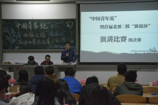 瑟瑟的秋风,阻拦不住同学们的激情;闪烁的星辰,照耀着同学们青春的脸庞。在2016年11月20日晚上6时许,“中国青年说”首届北郊三校“演说杯”演讲比赛预决赛在教1-203正式拉开序幕。莅临本次比赛的嘉宾有光电学院团委书记李睿老师,电信学院团委副书记夏开成老师和张国豪,校团委宣传部副部长邓瑞祥,机电工程学院团委副书记冯潇晨,材料与化工学院团委副书记张朋辉,人文学院团委副书记梁安慧。电信学院团委学生会各部门部长及干事参与。