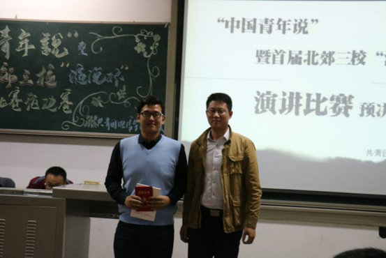 晚上6时许,“中国青年说”首届北郊三校“演说杯”演讲比赛预决赛在一段酷炫的开场视频中正式开始。接着,两位主持人为大家介绍了到场嘉宾以及九位选手并播放选手的VCR。随着赛程的进行,选手们一个接一个的展示精彩的演讲。第一轮演讲文稿由选手自己准备,所有的选手都积极的展现自我,自信沉着,不负众望,凭借流利的口才、自信的姿态和自然丰富的肢体语言展示了当代青年大学生的风采,赢得了评委和同学们阵阵掌声。其间伴着文艺部的同学为我们带来的美妙的歌曲,使会场气氛更加热烈。第一轮演讲结束后,团委副书记张国豪进行总结。在文艺部的同学优美的歌声过后,比赛继续进行第二轮。第二轮演讲是选手在第一轮自我演讲结束后,自己抽取即兴演讲主题,每位选手通过冷静的分析、镇定的思考加上严谨的语言,为我们带来了又一场视觉与听觉的盛宴。最后,由电信学院团委副书记夏开成老师进行总结,对同学们的表现进行点评。在欢跃的音乐中,主持人宣布本次比赛获奖名单,由嘉宾授予选手证书并合影留念,比赛于8时30分结束。