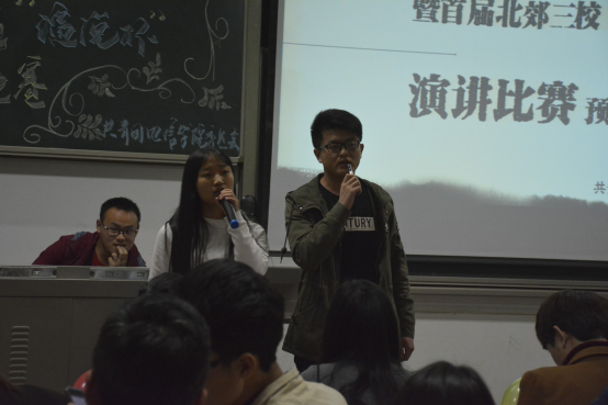 瑟瑟的秋风,阻拦不住同学们的激情;闪烁的星辰,照耀着同学们青春的脸庞。在2016年11月20日晚上6时许,“中国青年说”首届北郊三校“演说杯”演讲比赛预决赛在教1-203正式拉开序幕。莅临本次比赛的嘉宾有光电学院团委书记李睿老师,电信学院团委副书记夏开成老师和张国豪,校团委宣传部副部长邓瑞祥,机电工程学院团委副书记冯潇晨,材料与化工学院团委副书记张朋辉,人文学院团委副书记梁安慧。电信学院团委学生会各部门部长及干事参与。
