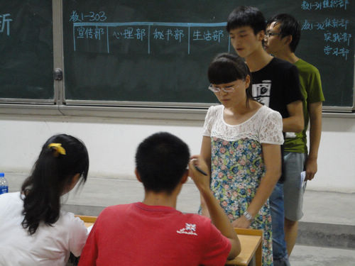 9月17日19时,电信学院学生会纳新活动在教1楼102、301、302、303室同时举行,学院团委副书记王锐老师、学生会干部以及13级新生参与此次活动。