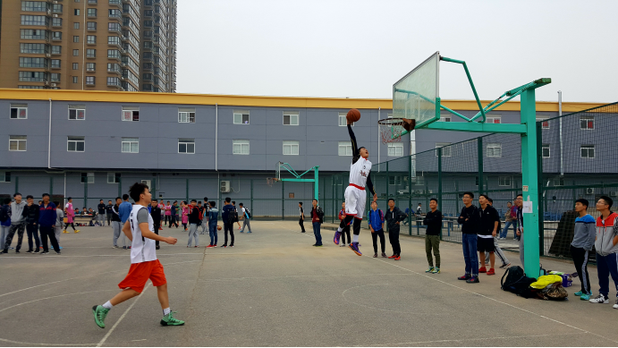金秋十月,碧空如洗,凉爽舒适。2016年10月11日,伴着秋风,迎来了西安工业大学迎新杯篮球赛。正值中午,电信院与经管院展开了一场激烈的友谊赛。参与本次活动的有体育部部长王宏洋、副部长杨攀,生活部部长李晨阳,秘书部部长刘海涛。