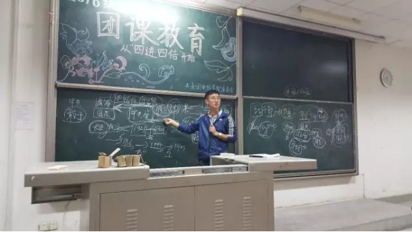 在组织部干事的安排下同学们有序入座。晚6点,团课教育正式开始。主持人对这次活动的内容做了简要叙述并请赵志升老师讲话。赵老师点明了团是中国共产党的后备军并通过讲述党的历史教育各位干事作为一名团员要有理想、有目标、有信念、学会坚持、勇于担当。身为一名团员,要积极宣传党的理论“四进四信”。身为一名学生干部,首先要具备学习能力其次是干部能力。各班团支部要明确目标,各司其职,处理好与同学之间的关系。接下来,组织部部长司雨晨讲话。司雨晨学姐强调了团员的政治面貌,政治使命感和责任感。她还提出我们要把握时代的脉搏,走在时代的前面。