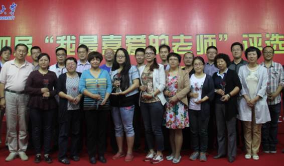 难忘师恩,接着进入激动人心的颁奖环节,主持人为获奖老师宣读颁奖词,用最真挚朴实的语言道出了老师们孜孜不倦,坚守岗位,教书育人,几十年如一日的辛苦工作, 2015年9月22日晚18点整在图书馆报告厅举行由校团委、校工会、校学生会主办的第四届“我最喜爱的老师”评选活动颁奖典礼。参与此次活动的有校工会副主席朱晋中,校团委书记赵琼,校团委副书记张瑛,各学院学生会副部级以上人员,教师代表及主持人和学生代表,以及校学生会工作人员。