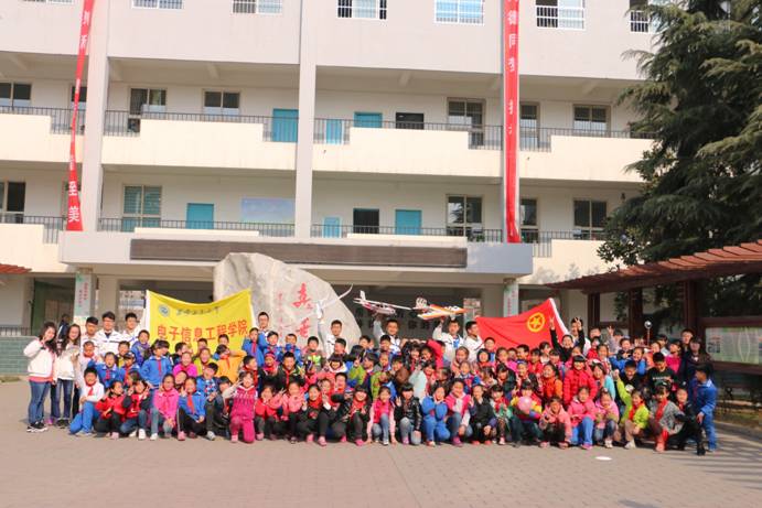 在忙碌的布置完会场以后,小朋友们都已经来到了教室。活动开头,学习部成员向小朋友们介绍了自己,为他们分好小组,并给他们分发零食和准备的小礼物。小朋友们很激动,每一张脸上都洋溢着灿烂的笑容。之后,学习部干事利用动画视频对小朋友们进行了安全教育。安全教育结束后,紧接着是科普知识,干事们拿着各种飞机模型、光立方、循迹车给小朋友们展示效果、讲解原理,引起了小朋友们极大的兴趣。在中场休息分发零食以后,学习部带领小朋友们进行了画画比赛,并选出了每组画得最好的小朋友给予了表扬和奖励。之后,部长亲自给小朋友们做了几个有趣的科学小实验,引起了他们的惊奇尖叫和兴奋拍手。最后,部长带领小朋友们给班上一名过生日的同学唱了生日歌,在一片欢声笑语中,此次活动圆满结束。离开之前,大家一起到教学楼前合影留念。小朋友们期待哥哥姐姐的下一次到来。