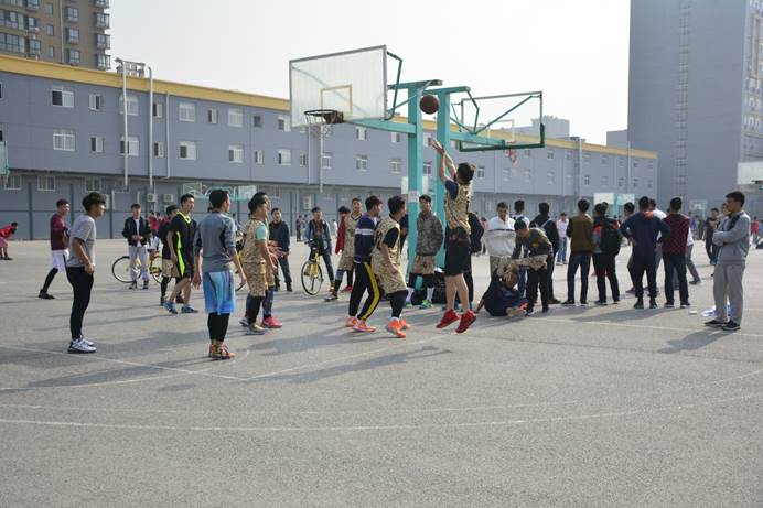 比赛前夕,队员们一遍遍练习着投篮运球,为之后开始的球赛热身。中午12时许,一场紧张又激烈地篮球赛开始了。比赛才刚开始,节奏却非常快。大二的学长们发挥他们的身高优势,体能优势,技巧优势,频频得分。大一的新生们却并不恢心,稳扎稳打,躲避学长们的强攻,不与之硬悍,捕捉学长们的失误,抓住机会得分。学长们在比赛过程中展示球技,让新生们在比赛的同时获益良多。随着比赛的进行,球员们体能消耗许多,额上的汗珠在阳光的照耀下闪闪发亮。他们来不及擦汗,来回奔跑在球场上,散发着属于大学生的青春与活力。比赛比分以30:47结束,大二的学长们以微弱的优势获得胜利。结束后,学长们与新生们友好地握手。新生们的脸上虽有些遗憾,但更多的是锻炼球技的毅力。