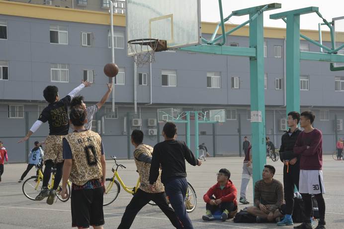 天气晴好,明亮的阳光在树叶上涂了一圈又一圈金色银色的光环。2016年11月15日,电信学院大二的学长们与大一的新生们在未央校区的露天篮球场进行了一场友谊赛。电信学院团委副书记张国豪,学生会主席宗世钰,以及电信学院团委学生会部分部门部长、副部长及干事到场观战