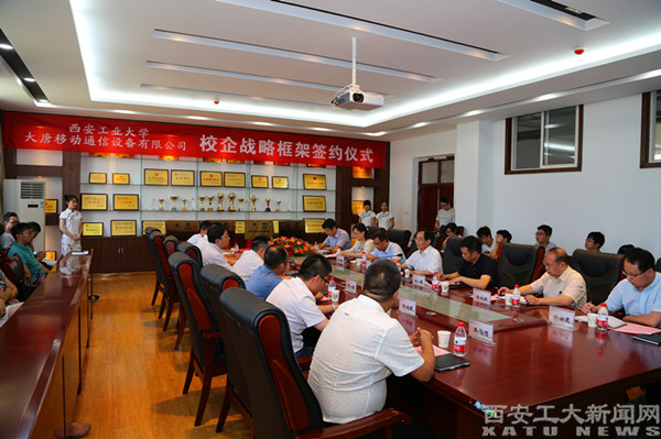 (本网讯)7月15日上午,西安工大与大唐移动通信设备有限公司战略合作协议签约仪式在电信学院会议室举行。副校长赵红星,教务处、电子信息工程学院相关部门负责人,大唐移动通信设备有限公司副总经理张敏、大唐移动通信学院院长刘杨等参加了签约仪式。