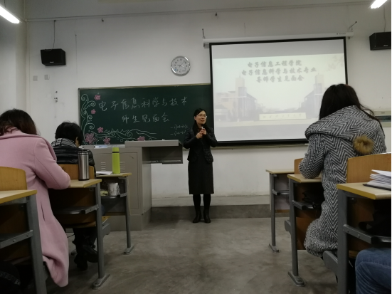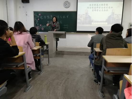 11月10日上午,电信学院举办电子信息科学与技术专业老师与新生见面会,学院党委副书记姚敏茹,信科专业张海宁、任安虎、赵黎、尚宇等5名老师,17级辅导员夏开成老师出席,电子信科学与技术专业2017级所有同学参加。