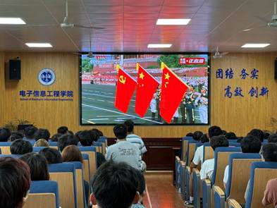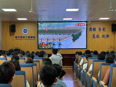 2025年9月3日,纪念中国人民抗日战争暨世界反法西斯战争胜利80周年阅兵式在北京天安门广场隆重举行。为铭记历史、缅怀先烈,弘扬伟大抗战精神,激发爱国热情与使命担当,电子信息工程学院组织师生于教5-422和教5-424集中观看“九三阅兵”现场直播,共同见证这一庄严而光荣的历史时刻。